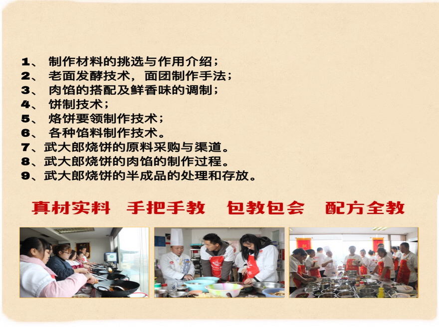 服务特色:①先试吃再学习,不正宗退学费;②包吃包住,不收取材料费用; ③不限制时间,至到学会为止。