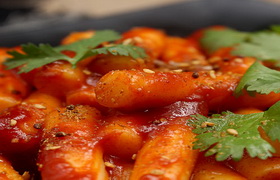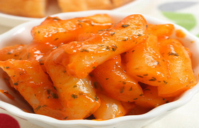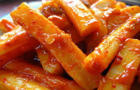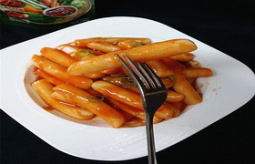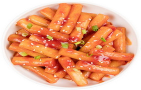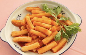 韩国炒年糕是一种休闲小吃,又称打糕条,流行于朝鲜半岛,原是19世纪朝鲜王国的宫廷菜,韩国美食界对其的官方称呼为"朝鲜炒年糕",因其诱人的味道而广受欢迎。