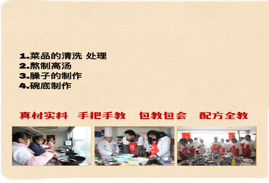 服务特色:①先试吃再学习,不正宗退学费;②包吃包住,不收取材料费用; ③不限制时间,至到学会为止。