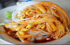 米凉面是四川广元地区汉族传统小吃之一,吃起来酸、甜、麻、辣、香兼具,开胃,爽口,味道浓久。超出广元市再无产地。其外型外型和陕西凉皮近似,但其原材料为大米而不是面粉。广元凉面口感滑腻爽口,清凉宜人。