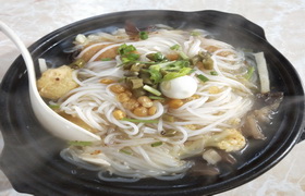 砂锅米线是用米线制作的一道云南特色风味美食,因其使用砂锅来进行煮制,所以得名砂锅米线。米线在泡制过程中营养容易流失,因此米线需搭配各种蔬菜(香菇、木耳、笋片等)、肉、蛋和凋料来增加营养,适当的调料同时又能让米线美味。