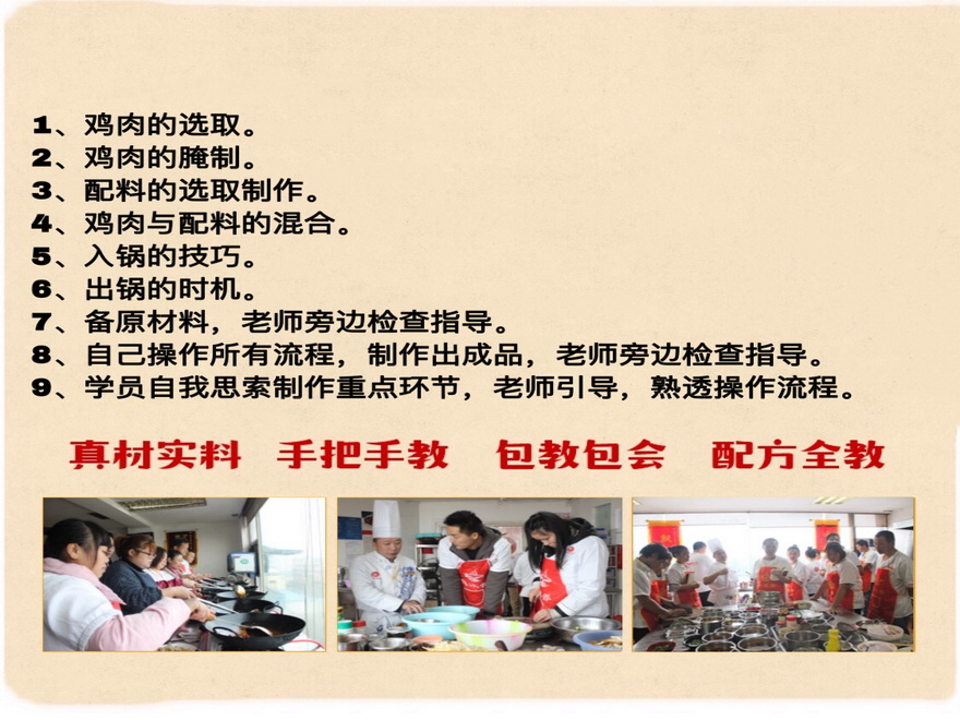 服务特色:①先试吃再学习,不正宗退学费;②包吃包住,不收取材料费用; ③不限制时间,至到学会为止。