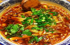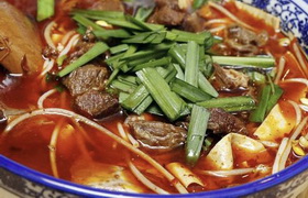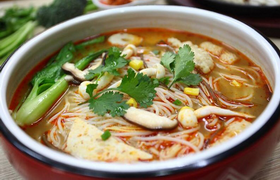 火锅米线即重庆火锅米线,由传统重庆火锅汤料加入传统小吃米线并配以经典重庆火锅配菜,如:鲜毛肚、豆皮、午餐肉、木耳、豆芽、方竹笋等煮制而成。