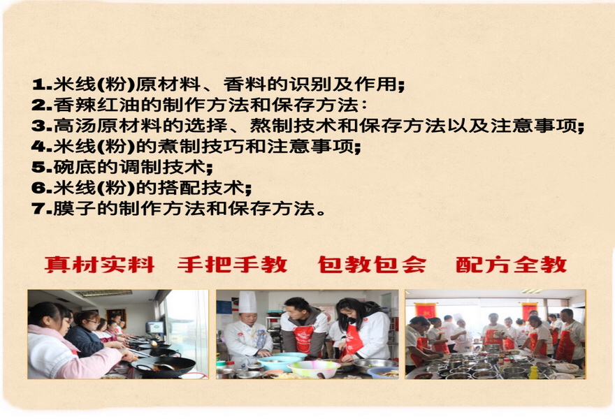 服务特色:①先试吃再学习,不正宗退学费;②包吃包住,不收取材料费用; ③不限制时间,至到学会为止。