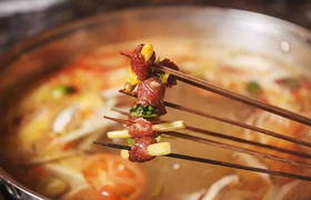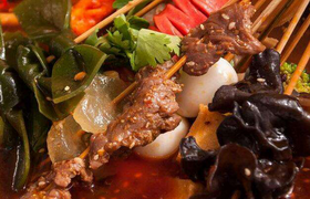 "串串香"名字的由来是因为这是一种以竹签串上各种菜,将其放进滚烫的火锅中涮着吃的小吃。串串香以其独特的魅力和鲜明的特色遍布于全国众多城市,"麻辣烫"亦是其变体,可以说只要有人的地方就有串串香的存在,甚至在一定程度上,串串香已成为四川味道的代表之一。