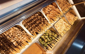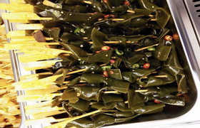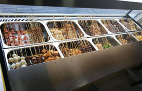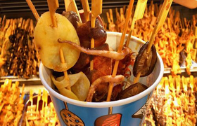 开心猫冷串串的菜品,都会提前卤制过,再摆盘。选好菜,再在调制好的红油中过一下,红油上有层厚厚的芝麻,吃起来很香。放进纸杯打包,一边走一边吃。如果红油慢慢从菜上,掉到纸杯底部了,建议可以把菜全部从竹签上,撸下来,蘸着油料吃会更好吃。