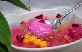 传统冰粉是用纱布包着冰粉籽在水里搓出来的,口感Q弹,吃起来要嫩一些,香味也更浓;粉兑的香味清淡,质感更硬,像布丁一样需要用勺子划开。最直观的分辨方式是看气泡:手搓冰粉会有小气泡,而且颜色偏黄。