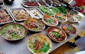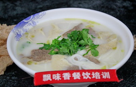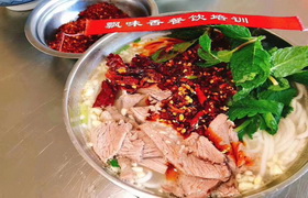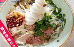 以新鲜羊肉,配以爽滑的米粉,加入鲜羊肉汤及各种调料和具有特色的油辣椒,其特色为香、鲜。米粉入口即化,老少兼宜,羊肉肥瘦适中,油而不腻。
