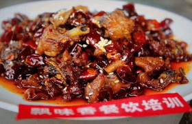 冷吃兔又名香辣兔、麻辣兔丁,是四川一种特色传统美食,在川菜分类上属于小河帮菜系,迄今已有百余年历史。四川的自贡、富顺、荣县一带是全国有名的养兔之乡,兔肉供应十分充足;该地区人们也十分喜爱吃兔肉,尤其是喜爱烹饪和品尝一种名为“冷吃兔的菜肴,几乎家家都会做,人人都爱吃。