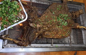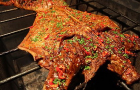烤全羊(Roast Whole Lamb),是一道地方特色菜肴。是新疆或者内蒙古地区少数民族膳食的一种传统风味肉制品 。色、香、味、形俱全,别有风味。