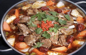 羊肉火锅是一道菜品,制作原料主要有羊肉、当归等,可用于阳痿、腰酸膝软、畏寒、夜尿多、产后血虚腹痛、四肢不温等症。据记载牛羊肉火锅起源于中原,早在春秋战国时期,中原草肥水美,中原人便在此地养牛羊致富,恩泽百姓。