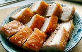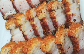脆皮烧肉是一道色香味俱全的特色传统名菜,制作原料主要有五花腩、玫瑰露等,属于粤菜系。口味鲜美,营养丰富。