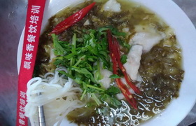 在冷冷的冬天吃上一碗酸菜鱼米线是非常不错的,味道汤酸鲜美,鱼片鲜嫩爽滑,软硬适中的米线,吃了还想吃哦。