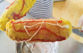 脆皮玉米是一种2014年兴起的美味食物,也称为台湾烤玉米。发源于台湾,后传入重庆,在重庆发展向了全国。脆皮玉米采用中原地区所独有的脆甜玉米改良制作。主要食材是初秋新鲜玉米和新鲜的鸡蛋液,配上番茄酱,黑胡椒酱,奶油等,玉米薯薯脆皮玉米口感脆嫩,同时又拥有独特的香甜,二者巧妙融合,叫人无法抗拒,是一种火爆的街边小吃。