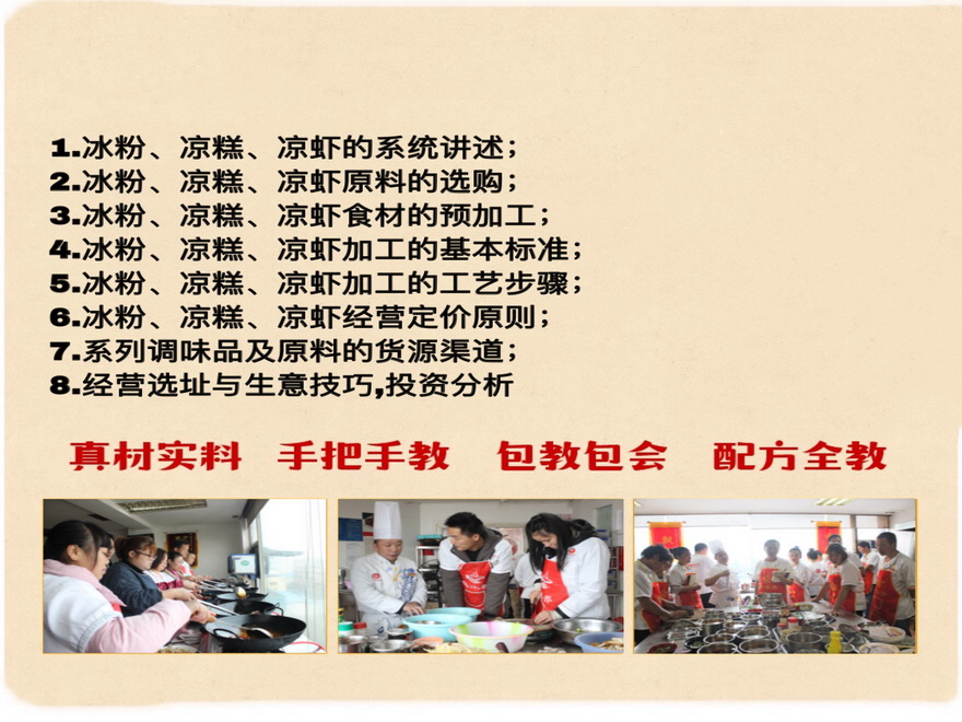 项目内容:凉糕,凉虾,冰粉培训