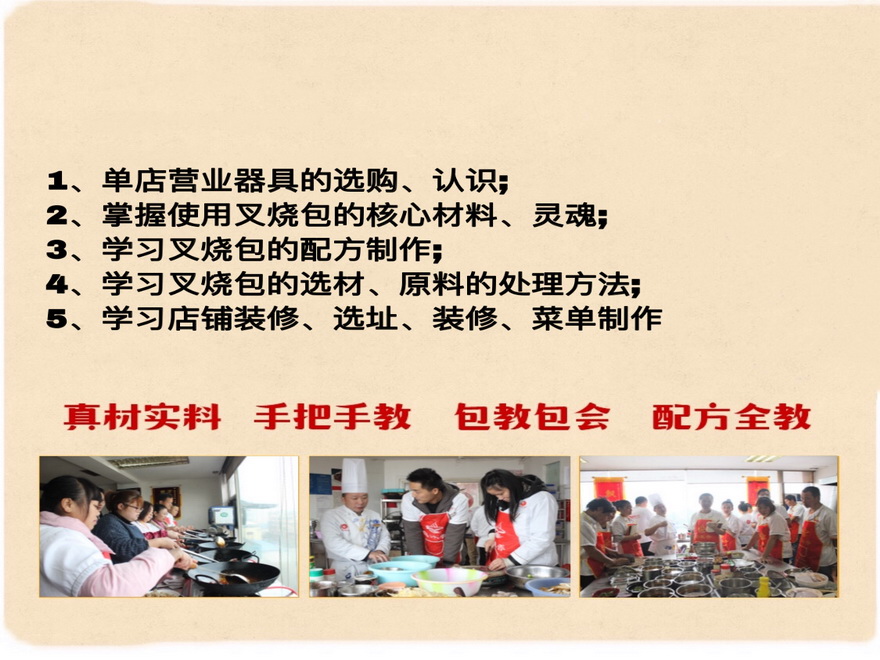 服务特色:①先试吃再学习,不正宗退学费;②包吃包住,不收取材料费用; ③不限制时间,至到学会为止。
