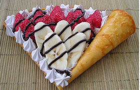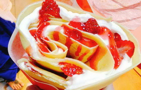 可丽饼(Crepes)是一种比薄烤饼更薄的煎饼,以小麦粉制作而成并且很流行的一种美食。